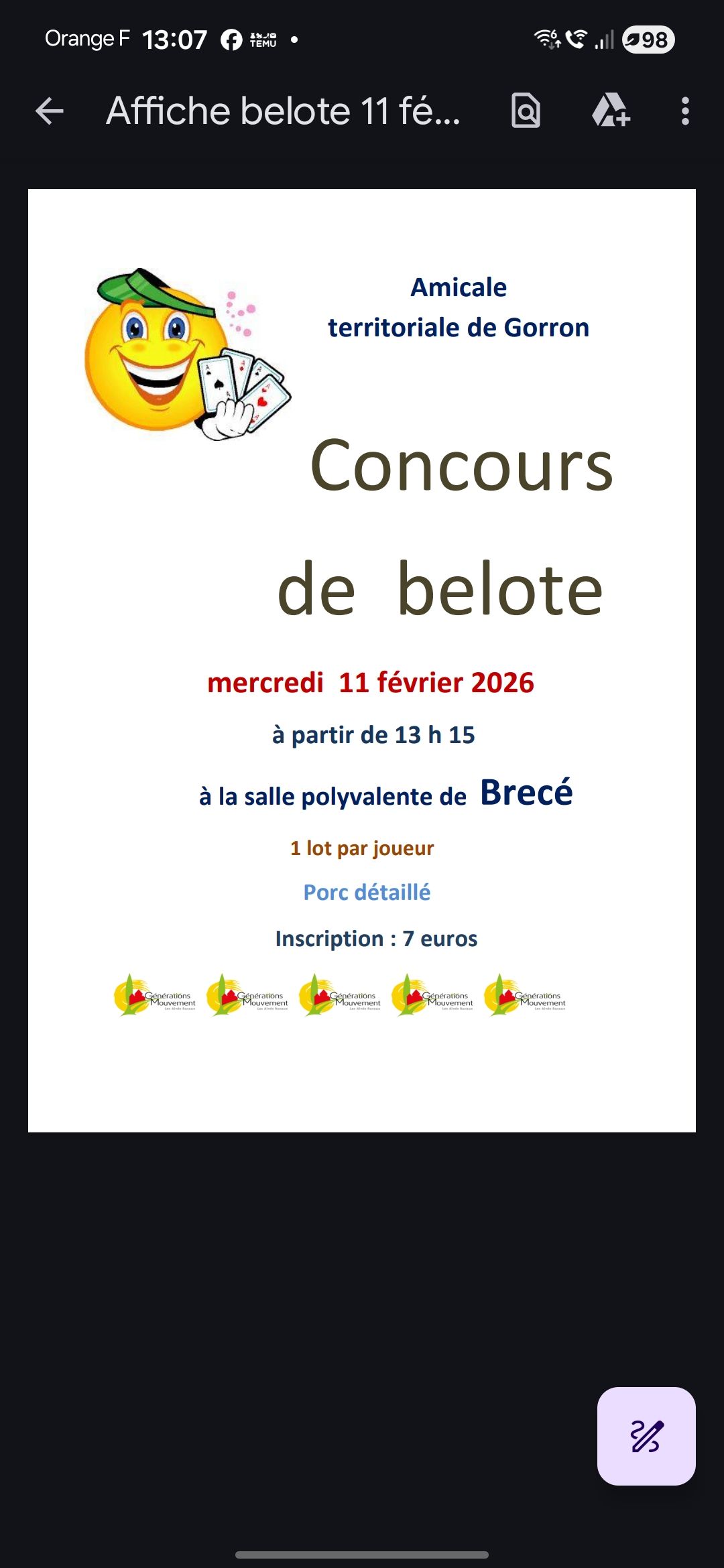Le concours de belote organisé par l’Amicale territoriale de Gorron se déroulera le mercredi 11 février 2026 à partir de 13h15 à la salle polyvalente de Brecé.