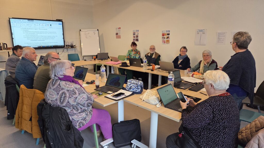 SE CONNECTER ! SAGA (Solution d’Aide à la Gestion Associative) SAGA – C’est parti ! Vidéo de présentation Vidéo RGPD (Règlement Général sur la Protection des Données) Le lancement des formations à l’utilisation de l’application informatique SAGA a commencé en janvier 2019.La nouvelle organisation mise en place il y a quelques semaines est la suivante :Désormais, l’activité SAGA est intégrée à la commission informatique.Pour les inscriptions des clubs à la formation SAGA, veuillez contacter le secrétariat de la fédération par mail fede53@gmouv.org. Ensuite, le secrétariat transmettra le plus rapidement possible au référent départemental André LÉVÊQUE toutes les demandes de formation, pour traitement. Veuillez cliquer sur ce texte pour connaître toutes les coordonnées du secrétariat de la fédération départemental.André LÉVÊQUE est l’administrateur et le formateur référent départemental Les formatrices et les formateurs des sessions de formation dans les territoires, sont :André LÉVÊQUE (référent départemental)Christiane CHARTIER (référente suppléante)Jacques LEROYERMonique MAREAUHenri GALPINMonique BRUNET (en appui)Paul-Henri PROUSTAlain BOUSSATYvon DELCOURT (en appui)Equipes des formateurs par secteur :Centre-Ouest – Sud-Ouest – Sud-Est :Christiane CHARTIER (référente suppléante)Jacques LEROYERMonique MAREAUHenri GALPINMonique BRUNET (en appui)Centre-Est – Nord-Ouest – Nord – Nord-Est :André LÉVÊQUE (référent départemental)Alain BOUSSATPaul-Henri PROUSTYvon DELCOURT (en appui)Planning prévu pour 2026 :33 personnes sont en attente de formation sur SAGA, gestion des adhérent(e)s et e-mailing. 19 personnes sont en attente de formation SAGA comptable.D’autres clubs vont venir enrichir la liste des clubs déjà formés, ci-dessus, en suivant des formations en 2026. Délégation de pouvoir Charte d'utilisation (RGPD) Plaquette Administrateur SAGA formation "La Base..." Diaporama de présentation SAGA Comptabilité Trésorerie PDF Guide d'utilisation - Tenir facilement sa comptablité sur AssoConnect Ci-dessous, photothèque des formations Le 13/02/26 à Cossé-le-Vivien Le 13/02/26 à Cossé-le-Vivien Le 13/02/26 à Cossé-le-Vivien Le 11/02/26 à Saint-Jean-sur-Mayenne Le 11/02/26 à Saint-Jean-sur-Mayenne Le 11/02/26 à Saint-Jean-sur-Mayenne Le 09/02/26 à Lignières-Orgères Le 09/02/26 à Lignières-Orgères Le 09/02/26 à Lignières-Orgères Le 04/02/26 à Saint-Denis-du-Maine Le 04/02/26 à Saint-Denis-du-Maine Le 04/02/26 à Saint-Denis-du-Maine Formation à Beaucouzé (49) le 27 octobre 2025 Formation à Beaucouzé (49) le 27 octobre 2025 Formation à Beaucouzé (49) le 27 octobre 2025 Vidéo diaporama photos des différents groupes en formation Retour menu