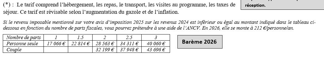 - Le tarif : 820 € à 920 € (hors aide ANCV)